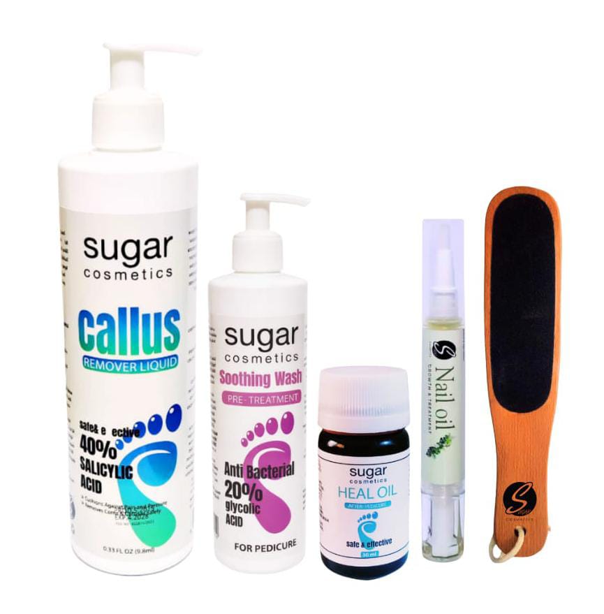 callus remover + pre-treatment wash + after pedicure heal oil+ scrubber+nail oil